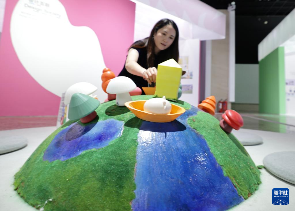 9月25日,参观者在“童思筑梦——儿童设计美育新时代”北京国际儿童设计创新体验展上观看展品。