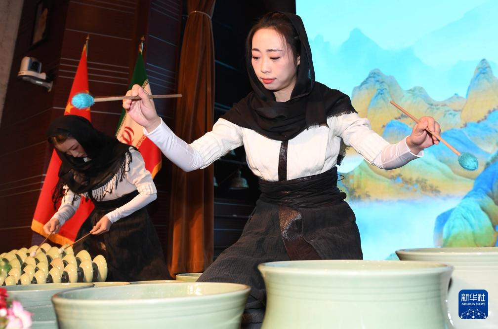 10月30日,演员在伊朗德黑兰伊朗国家艺术科学院举行的“青风海上来”浙江青瓷巡礼开幕式暨“万象中国·天下宁波”宁波文旅推介会开幕式上表演。新华社记者 沙达提 摄