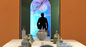 11月8日,在湖南省浏阳市小河乡乌石村的乌石当代艺术馆,农民演示如何通过“乌石艺术”小程序购买油画.
