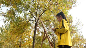 11月8日,在湖南省浏阳市小河乡乌石村,农民在画室绘制油画。