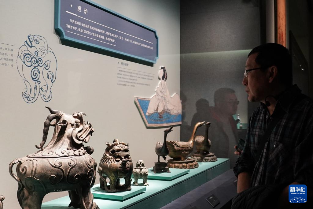 这是展览上陈列的清代象耳象足铜熏炉(11月22日摄)。