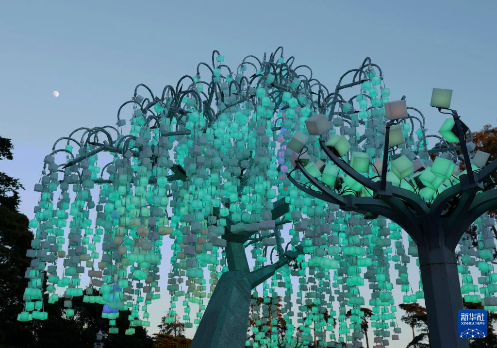 这是12月23日在美国旧金山金门公园拍摄的灯饰。