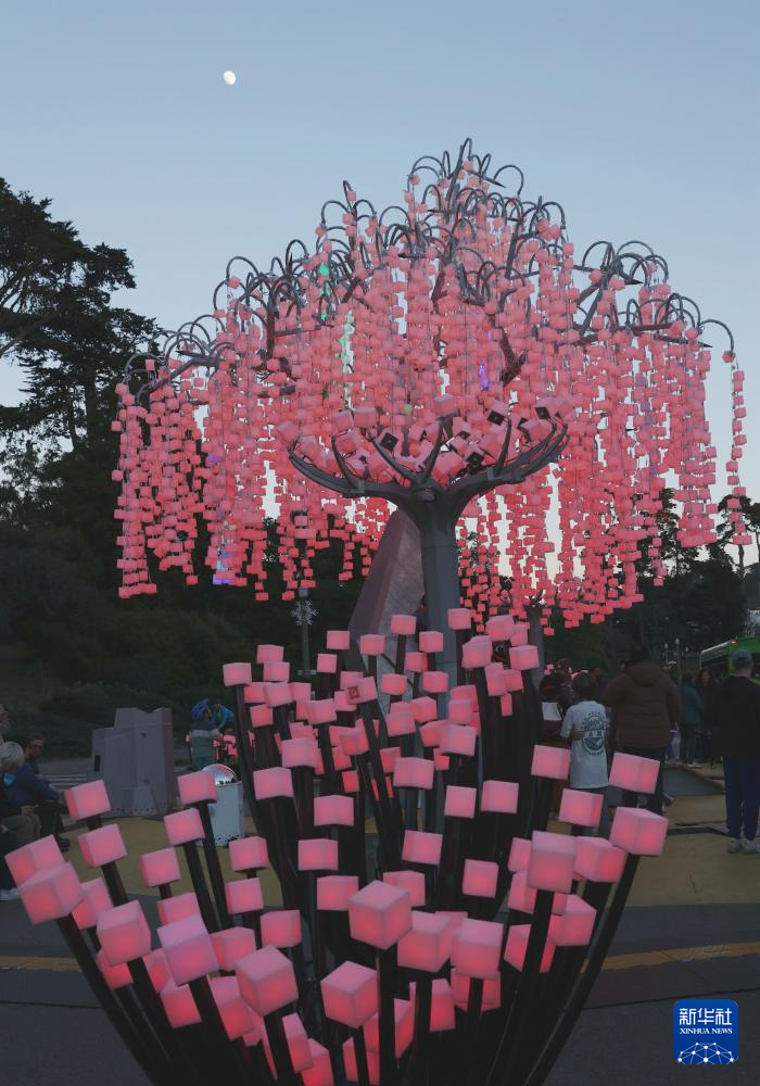 12月23日,人们在美国旧金山的金门公园观赏灯饰。