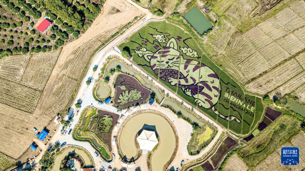 这是12月30日在泰国清莱拍摄的以猫为图案的巨型稻田画(无人机照片)。