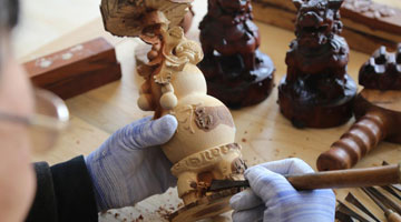3月28日,在山西省岚县岚城镇,人们用手机拍摄面塑作品。