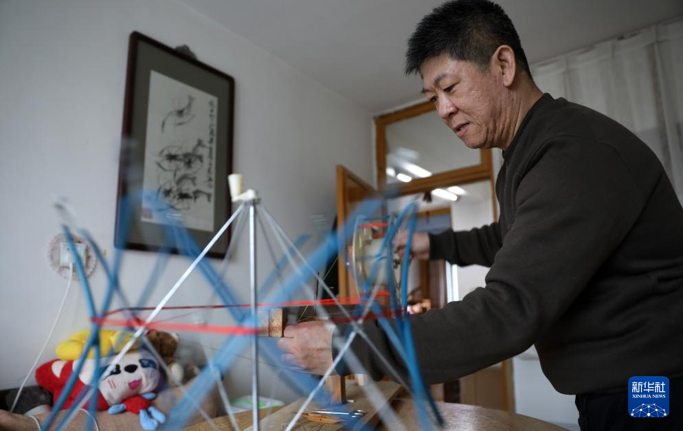4月9日,申涛在位于营口市的家中用摇线机进行摇线。