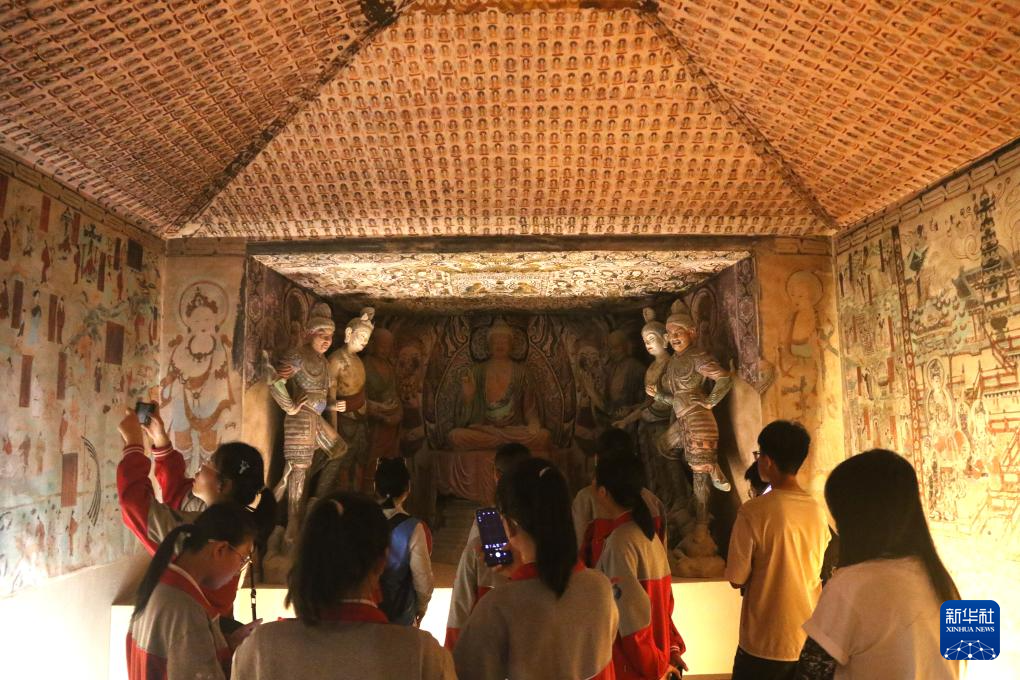 5月18日,观众在甘肃省敦煌市博物馆观展。