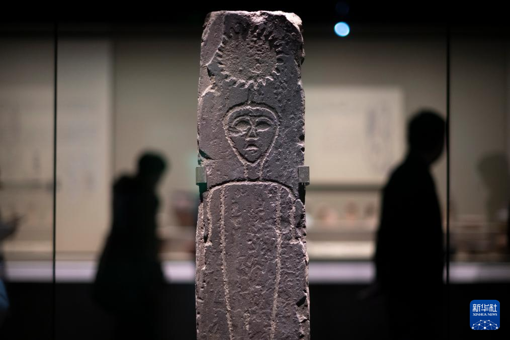 12月31日,观众在参观“太阳人”石刻。
