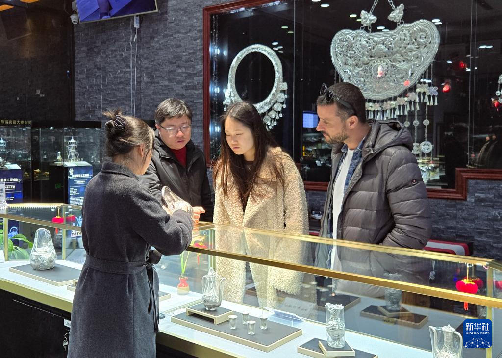 2月18日,意大利设计师(右一)在贵州采风获取设计灵感。