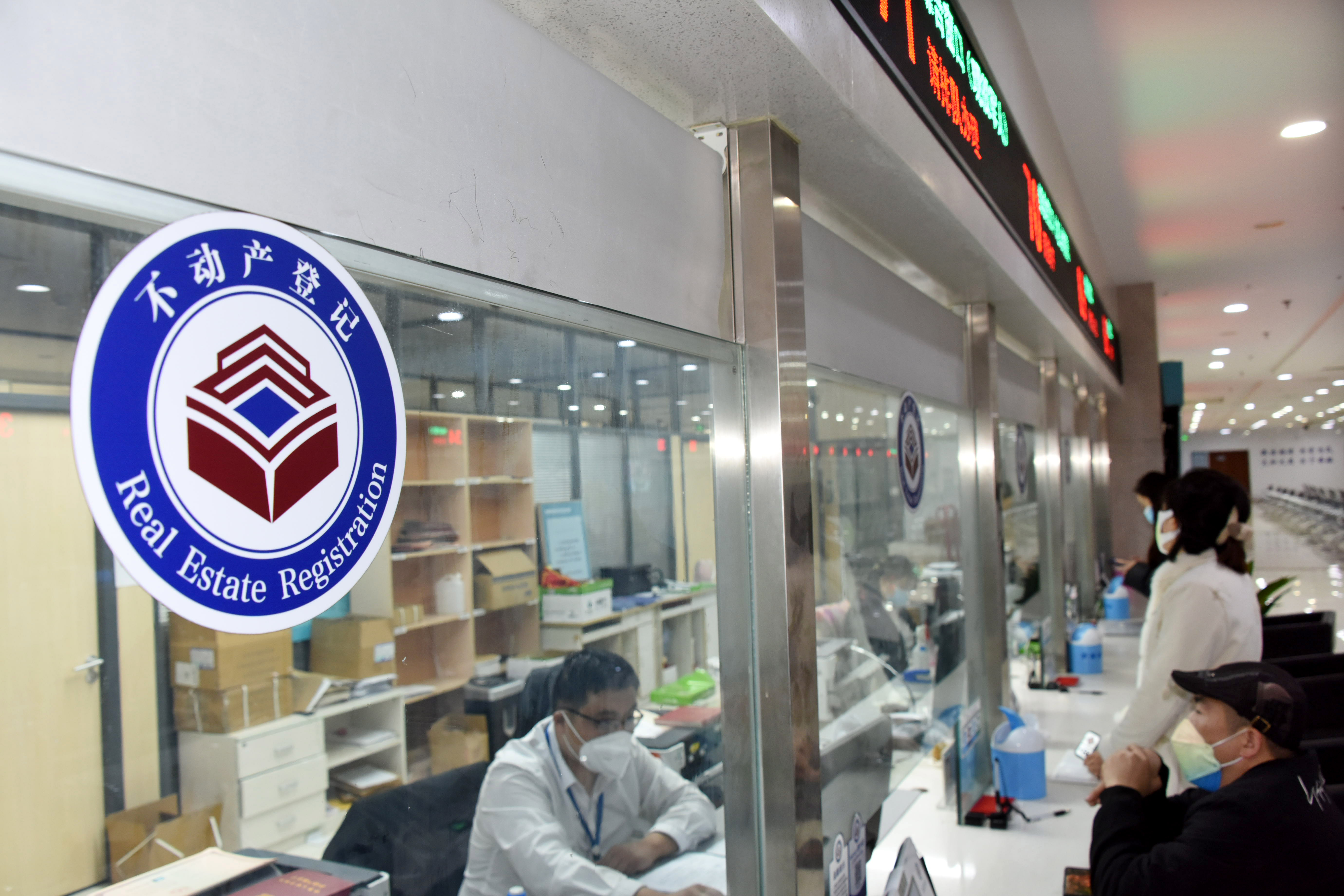 市民在青岛西海岸新区不动产登记中心办理不动产权证书。新华社记者 李紫恒 摄