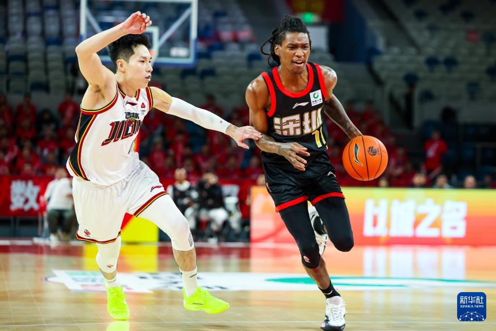 12月16日,吉林长白山恩都里队球员威尔逊(右)在比赛中带球突破。