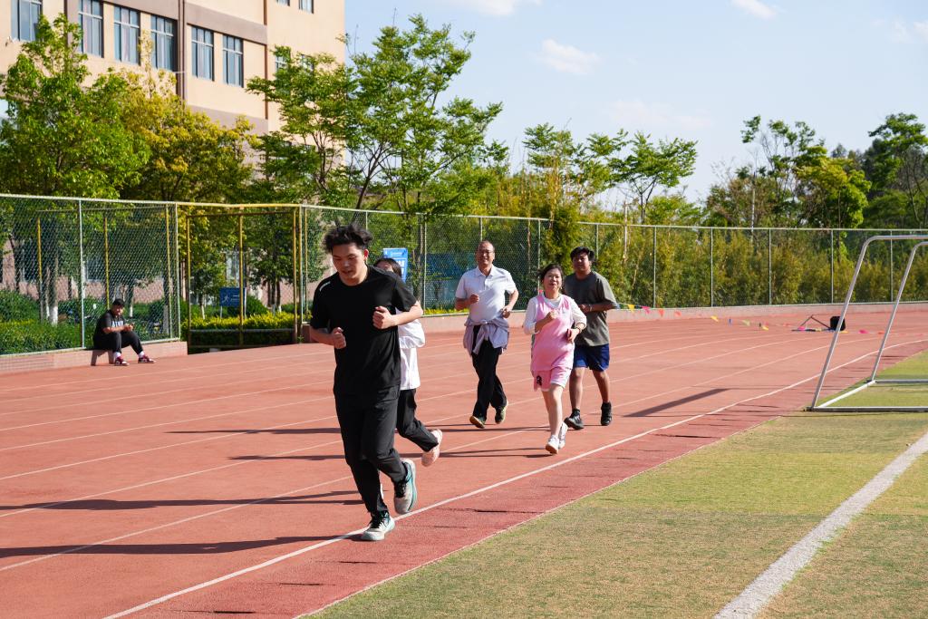 云南商务职业学院的老师和学生在跑步。