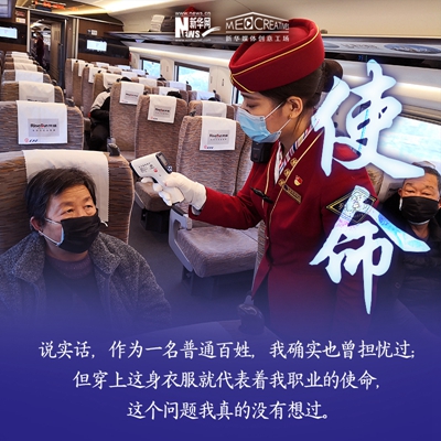 孫碩,北京客運段京廣高鐵車隊的列車長之一。進入高鐵工作8年時間,其中7次大年三十在值乘任務中度過,沒有陪伴家人。2020年春運,他值乘北京西至福田站的G71/72次復興號動車組列車,途徑石家莊,鄭州東,武漢,長沙南,廣州南等省會車站。他的母親作為醫(yī)護工作者,曾參與過非典時期的救援任務,他雖不是醫(yī)護人員,但在這個特殊時期服務于社會,依然感到榮幸。