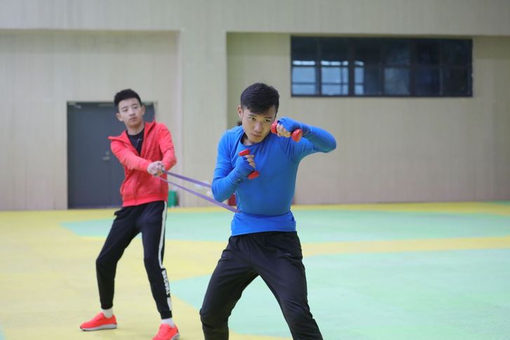 “通過啞鈴鍛煉肩部耐力,腳腕綁沙袋練習(xí)移動(dòng)速度,用杠鈴加強(qiáng)出拳力量和爆發(fā)力,配合手靶全面練習(xí)。因?yàn)槭菑牧汩_始,要想拿到成績,必須付出成倍的努力。”趙佳偉說。