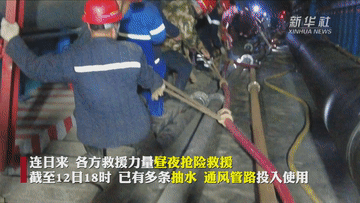 應(yīng)急、消防、電力、衛(wèi)健等多部門人員正緊張有序開展工作。在多方救援力量的一同努力下,事發(fā)后7小時(shí),第一臺(tái)水泵就完成安裝并投入使用。40個(gè)小時(shí)內(nèi),發(fā)生事故煤礦共有7個(gè)排水泵先后完成安裝和投用。