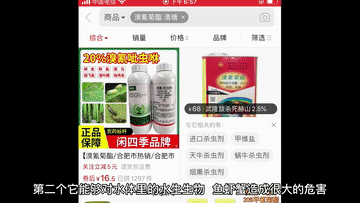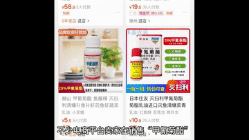 不少電商平臺(tái)賣家在銷售“甲氰菊酯”“溴氰菊酯”等產(chǎn)品時(shí),專門(mén)標(biāo)注了“水產(chǎn)養(yǎng)殖戶清塘專用”“迷蝦”“捕蝦”等字樣。但賣家同時(shí)又提示:產(chǎn)品對(duì)魚(yú)蝦有毒,請(qǐng)遠(yuǎn)離池塘河流,謹(jǐn)慎使用。