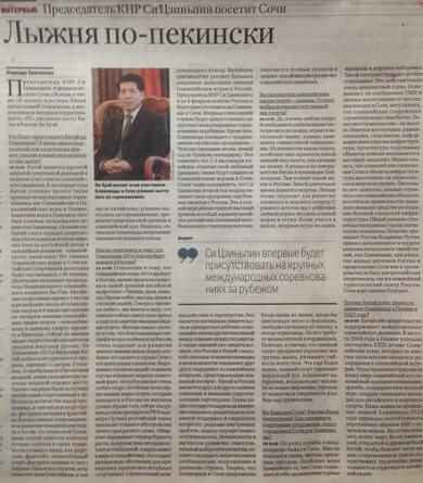2014年1月28日,中國駐俄羅斯大使李輝就習近平主席應(yīng)俄羅斯總統(tǒng)普京邀請出席索契冬奧會接受俄政府報紙《俄羅斯報》專訪。