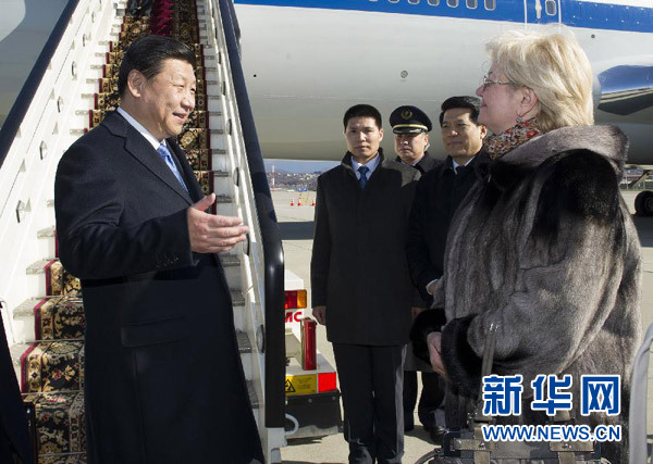 ????當地時間13時50分許,習近平乘坐的專機抵達索契阿德列爾機場。習近平受到索契市負責人的歡迎。