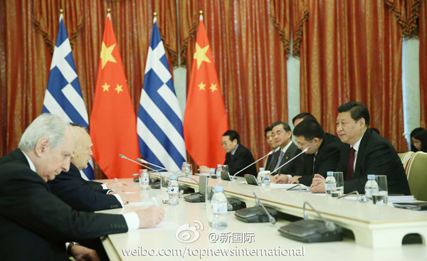 習(xí)近平7日在索契會(huì)見(jiàn)希臘總統(tǒng)帕普利亞斯 蘭紅光攝