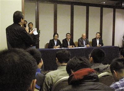昨日13時(shí)40分許,馬航相關(guān)負(fù)責(zé)人在麗都飯店召開(kāi)家屬通報(bào)會(huì)。