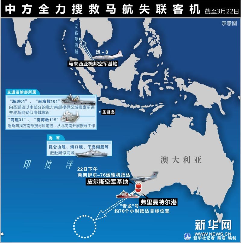 圖表:中方全力搜救馬航失聯(lián)客機(jī)
