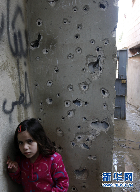 3月23日,黎巴嫩首都貝魯特槍?xiě)?zhàn)現(xiàn)場(chǎng),一黎巴嫩女童在躲避槍?xiě)?zhàn)。