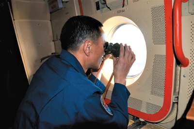 24日,中國(guó)空軍機(jī)組人員在任務(wù)海域搜索。 新華社發(fā)