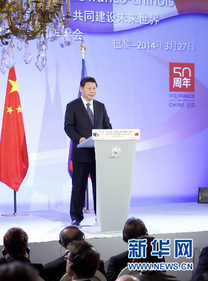 ??? 3月27日,國(guó)家主席習(xí)近平在巴黎出席中法建交50周年紀(jì)念大會(huì)并發(fā)表重要講話。 新華社記者 鞠鵬 攝
