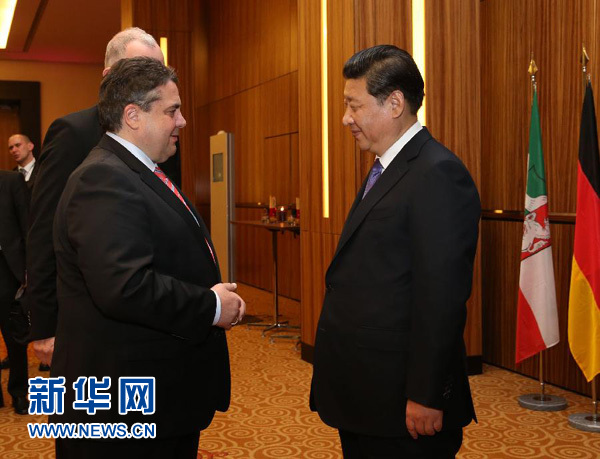 ??? 新華網(wǎng)德國杜塞爾多夫3月29日電(記者饒博文史哲)國家主席習近平29日在杜塞爾多夫會見德國副總理兼經(jīng)濟和能源部長、德國社會民主黨主席加布里爾。