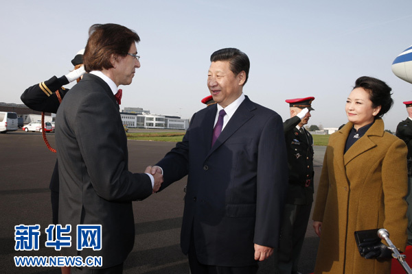習(xí)近平是在結(jié)束對德國的國事訪問后從杜塞爾多夫抵達(dá)布魯塞爾的。離開杜塞爾多夫時,德國北威州州長克拉夫特等德方官員到機(jī)場送行。