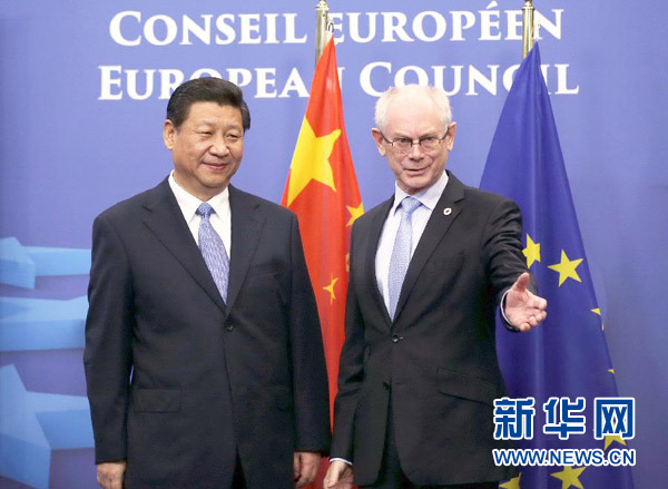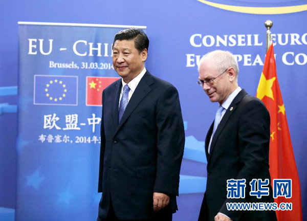 ????3月31日,國家主席習(xí)近平在比利時(shí)布魯塞爾同歐洲理事會(huì)主席范龍佩舉行會(huì)談。 新華社記者 鞠鵬 攝