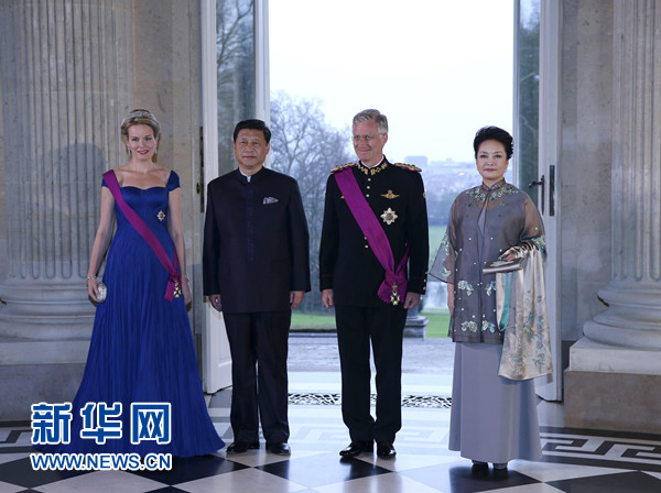 ????3月31日晚,比利時(shí)國(guó)王菲利普在布魯塞爾拉肯宮舉行隆重國(guó)宴歡迎國(guó)家主席習(xí)近平到訪。習(xí)近平和夫人彭麗媛抵達(dá)時(shí),受到菲利普國(guó)王和瑪?shù)贍柕峦鹾鬅崆橛?。新華社記者 龐興雷 攝