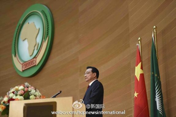 李克強(qiáng)5日在非盟會(huì)議中心發(fā)表演講。(記者謝環(huán)馳攝)