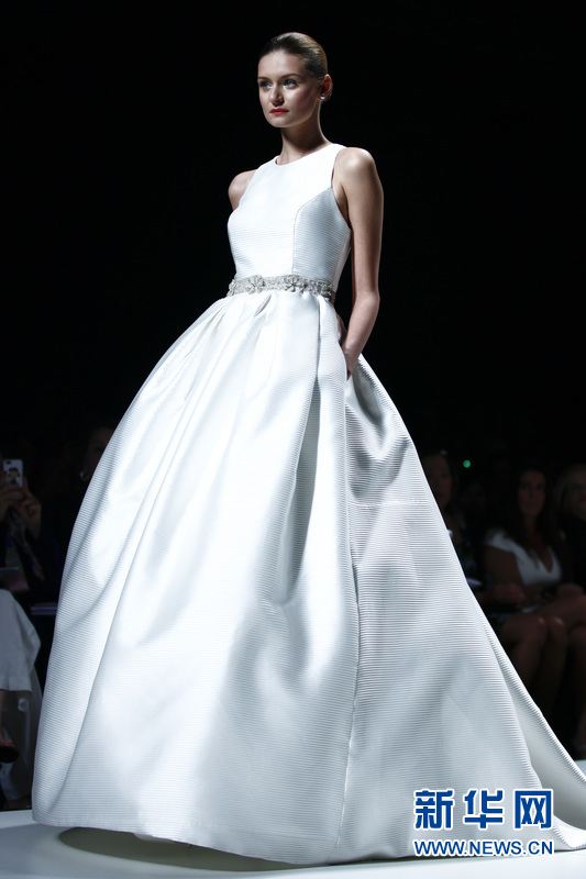 特在T臺上展示西班牙女服裝設(shè)計師Rosa Clara的婚紗作品。Rosa Clara同時也是來自巴塞羅那當(dāng)?shù)氐囊粋€婚紗品牌。