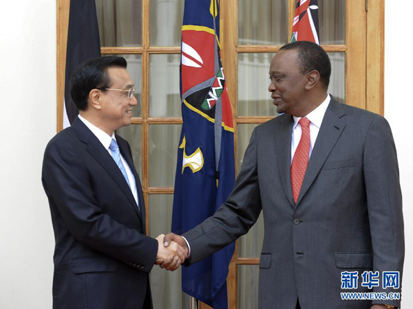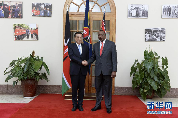 ????新華網(wǎng)內(nèi)羅畢5月10日電(記者袁炳忠 明金維)國務(wù)院總理李克強(qiáng)10日上午在肯尼亞國家宮同肯總統(tǒng)肯雅塔舉行會談。
