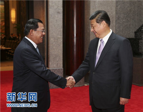 習近平表示,中方愿意同柬方繼續(xù)保持高層往來,加強執(zhí)政黨交往,分享治國理政經(jīng)驗。中方支持洪森首相帶領(lǐng)柬埔寨人民走符合本國國情的發(fā)展道路,支持柬方維護國家安全和穩(wěn)定的努力,將繼續(xù)為柬埔寨經(jīng)濟社會發(fā)展提供力所能及的幫助,推進農(nóng)業(yè)、旅游等領(lǐng)域合作,實施好柬方水電、煤電、經(jīng)濟特區(qū)等項目,結(jié)合絲綢之路經(jīng)濟帶和21世紀海上絲綢之路建設(shè),帶動基礎(chǔ)設(shè)施互聯(lián)互通。雙方還要擴大人文合作,促進青年交流。