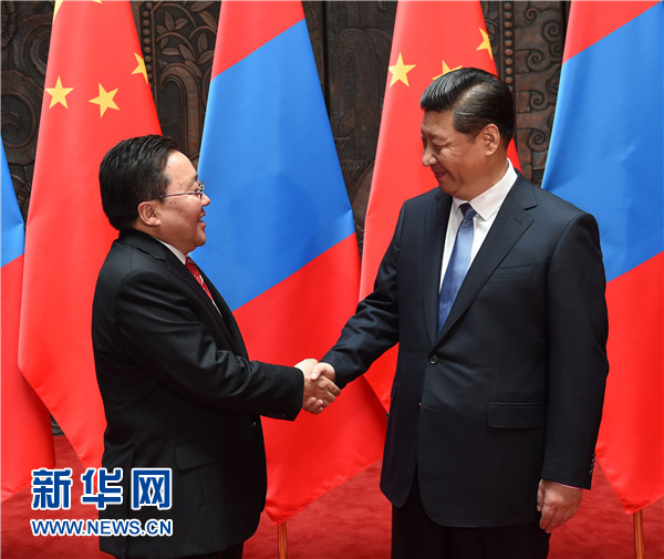 習(xí)近平強(qiáng)調(diào),我十分關(guān)心和高度重視中蒙關(guān)系。兩國領(lǐng)導(dǎo)人要保持密切交往和戰(zhàn)略溝通,實(shí)實(shí)在在推進(jìn)兩國合作。兩國立法機(jī)構(gòu)、政黨、軍隊(duì)也要加強(qiáng)交往。中蒙經(jīng)濟(jì)互補(bǔ)性強(qiáng)。中方開展對蒙合作堅(jiān)持互利雙贏原則,不搞我贏你輸、我多你少。中方愿本著礦產(chǎn)資源開發(fā)、基礎(chǔ)設(shè)施建設(shè)、金融合作“三位一體、統(tǒng)籌推進(jìn)”原則,以互聯(lián)互通建設(shè)為優(yōu)先方向,以建設(shè)絲綢之路經(jīng)濟(jì)帶為契機(jī),拓展兩國合作,鼓勵有實(shí)力的中國企業(yè)赴蒙投資興業(yè)。中方支持蒙方積極參與國際和地區(qū)事務(wù),愿同蒙方加強(qiáng)在聯(lián)合國、上海合作組織等框架內(nèi)合作。