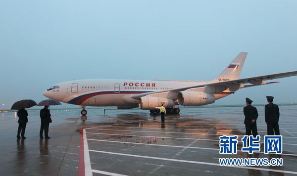 ??? 5月20日,俄羅斯聯(lián)邦總統(tǒng)普京抵達(dá)上海,開始對(duì)中國進(jìn)行為期兩天的國事訪問并出席在上海舉行的亞洲相互協(xié)作與信任措施會(huì)議第四次峰會(huì)。這是普京乘坐的專機(jī)抵達(dá)上海虹橋國際機(jī)場(chǎng)。 新華社記者 裴鑫 攝