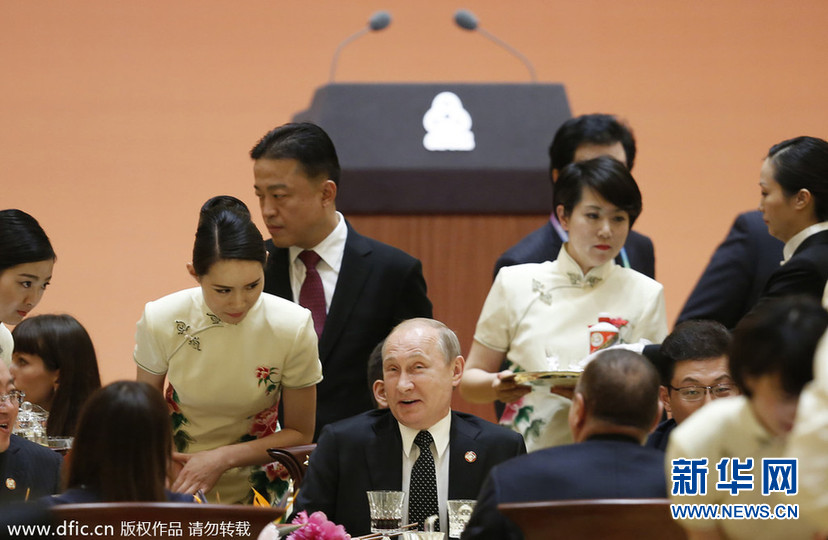 ??? 2014年5月20日,上海舉行亞洲相互協(xié)作與信任措施會議第四次峰會。俄羅斯總統(tǒng)弗拉迪米爾-普京出席2014上海亞信峰會歡迎晚宴,被美女禮儀服務小姐吸引。