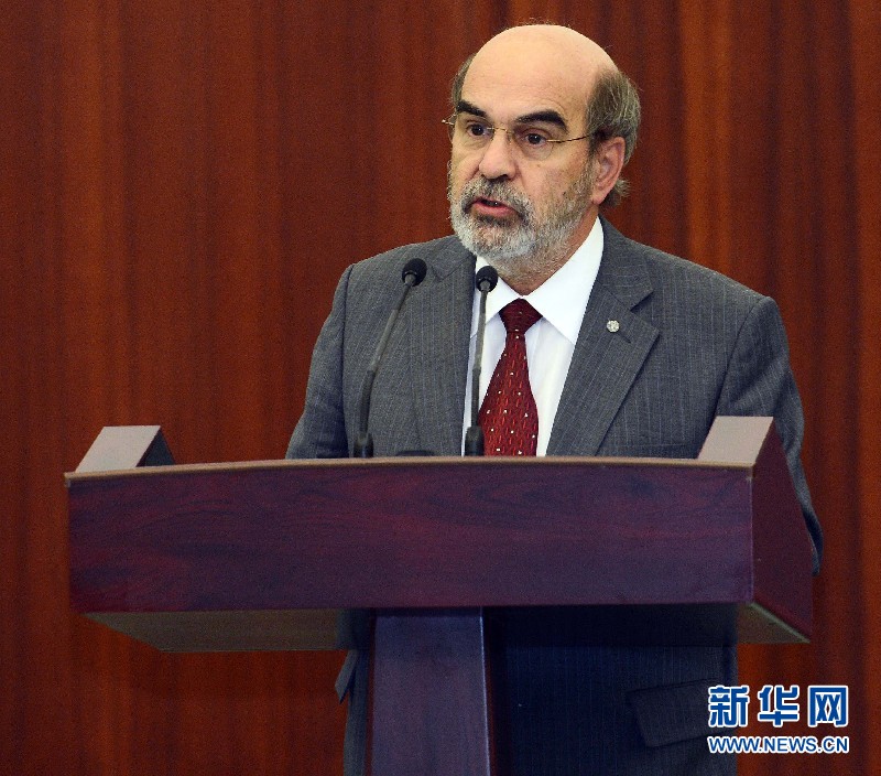 ????6月6日,在烏茲別克斯坦首都塔什干國際會議宮,聯(lián)合國糧農(nóng)組織總干事若澤·格拉齊亞諾·達席爾瓦在講話。(沙達提 攝)
