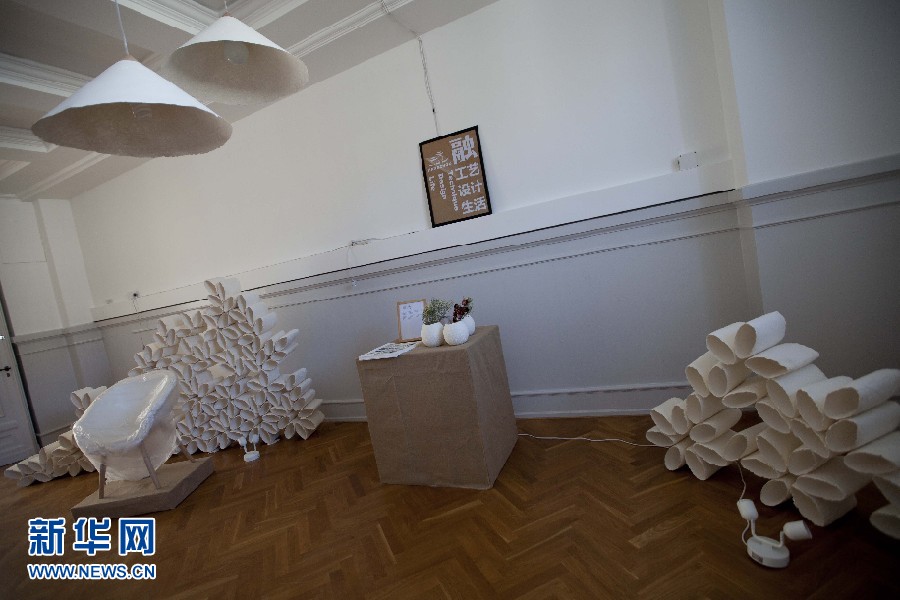 圖為10日所拍攝的“融?工藝設(shè)計(jì)生活”為主題的中國(guó)當(dāng)代設(shè)計(jì)展畫面。
