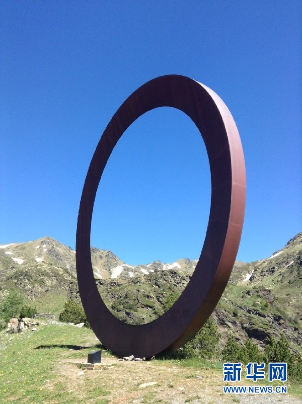 ????安道爾境內山路邊上的一個雕塑,根據(jù)旁邊的說明,這個圓環(huán)象征著“永恒與寧靜”。(周喆 攝)