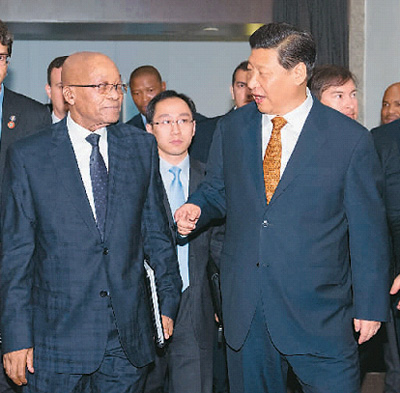 祖馬表示,南非希望加強(qiáng)同中國的全面戰(zhàn)略伙伴關(guān)系,密切在重大國際和地區(qū)問題上的溝通和協(xié)調(diào),擴(kuò)大經(jīng)貿(mào)、能源等領(lǐng)域合作。南方歡迎中國企業(yè)積極參與南非經(jīng)濟(jì)社會發(fā)展。我期待今年下半年訪華,進(jìn)一步提高兩國合作水平。南方感謝中方對建設(shè)非洲快速反應(yīng)部隊提供的支持。中非合作論壇部長級會議2015年在南非舉行,南方愿意同中方一道,推動非中合作取得更多成果。
