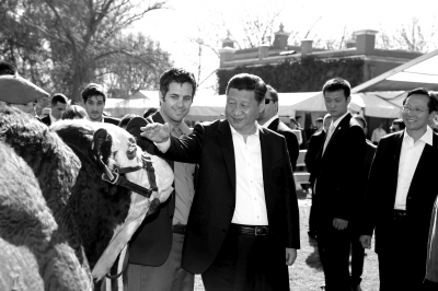 ????習近平受到農(nóng)場主莫內(nèi)塔一家熱情迎接。莫內(nèi)塔向習近平介紹,莊園畜養(yǎng)牲畜近萬頭,培育了許多優(yōu)秀種馬和肉牛品種。習近平邊聽邊詳細詢問牲畜養(yǎng)殖和農(nóng)場經(jīng)營情況。習近平指出,阿根廷是農(nóng)牧業(yè)大國,農(nóng)業(yè)現(xiàn)代化水平和科技水平很高。中國也是農(nóng)業(yè)大國。中國要發(fā)展,必須首先解決好13多億人口吃飯問題。中國高度重視農(nóng)業(yè),堅持立足國內(nèi)、確保糧食自給自足,同時積極利用國際市場,參與國際合作,調(diào)劑農(nóng)副產(chǎn)品。中方愿意同阿方加強農(nóng)業(yè)領(lǐng)域合作,擴大農(nóng)產(chǎn)品貿(mào)易。