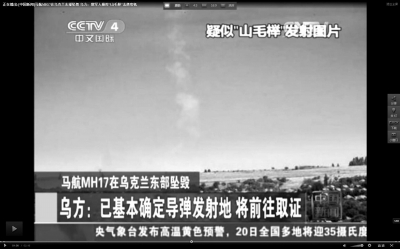 烏克蘭高級情報官員維塔利·納伊達(dá)19日召開新聞發(fā)布會,指認(rèn)俄羅斯人發(fā)射“山毛櫸”地對空導(dǎo)彈,擊落了馬航MH17航班,并公布了三輛“山毛櫸”導(dǎo)彈車18日進(jìn)入俄羅斯的照片。對此,俄羅斯國防部表示,客機(jī)墜毀當(dāng)天沒有“山毛櫸”導(dǎo)彈系統(tǒng)或其他任何武器裝備從俄羅斯轉(zhuǎn)移至烏克蘭境內(nèi)。另據(jù)報道,烏克蘭東部民間武裝20日說,墜毀的馬航MH17客機(jī)黑匣子已經(jīng)找到并送往頓涅茨克。