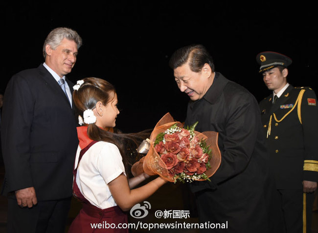 ???? 新華網(wǎng)北京7月22日電 據(jù)新華社“新國際”微博報道,結束對委內(nèi)瑞拉的國事訪問后,習近平主席乘坐的專機經(jīng)過3個多小時飛行,于當?shù)貢r間21日晚抵達哈瓦那,開始對“加勒比明珠”古巴的國事訪問。2011年,時任國家副主席的習近平曾經(jīng)訪問過古巴。(李學仁攝)