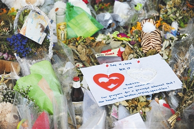 7月29日,阿姆斯特丹機(jī)場,乘客悼念馬航MH17遇難者。