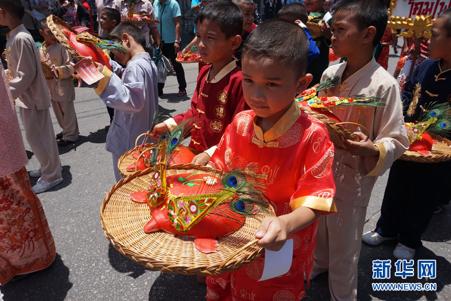 ????8月12日,泰國普吉府舉辦中國傳統(tǒng)的“中元普渡”活動,以普渡孤魂,表達仁愛和孝道思想。該活動在普吉已有150多年的歷史,每逢中國農(nóng)歷7月,當?shù)厝A人便會舉行祭祀儀式,用面粉和糖制成大小不一的紅色面團,裝飾成烏龜形狀,既表達了對于祖先的懷念,還傳遞了對于全家人健康長壽的祝福。圖為一名兒童手捧用于祭祀的烏龜形狀糕點。新華網(wǎng)記者 楊云燕 攝