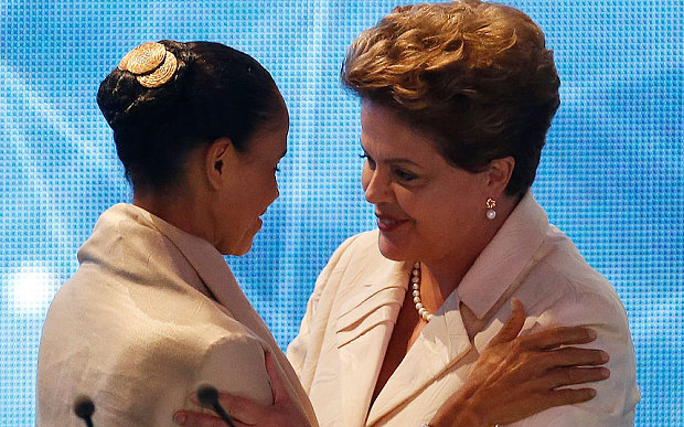 ????其實(shí),席爾瓦的政治生涯也極具戲劇性并充滿意外。起先參與政治活動(dòng)的她,后來(lái)又成了一名環(huán)境保護(hù)主義者;在擔(dān)任多年的國(guó)會(huì)議員后,她于2003年在盧拉政府中出任環(huán)境部長(zhǎng)。2009年8月前,席爾瓦與羅塞夫同屬勞工黨;2010年,席爾瓦代表綠黨參選總統(tǒng)并落選。在今年的巴西總統(tǒng)選舉中,加入社會(huì)黨的席爾瓦本來(lái)是作為副總統(tǒng)競(jìng)選人陪伴坎波斯,但由于坎波斯在8月份墜機(jī)身亡,席爾瓦在黨內(nèi)被選為總統(tǒng)競(jìng)選人。