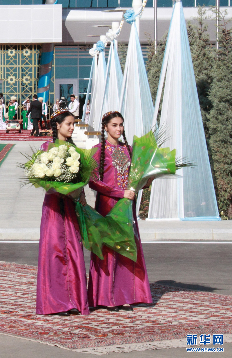 準備向總統(tǒng)獻花的土庫曼斯坦美女? 記者 盧敬利攝